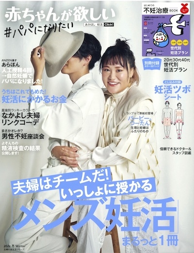 本誌ではほかにも、「男の妊活」最新キーワードや、メンズが知っておきたい妊活にかかるお金のこと、男性不妊座談会など、気になる情報が満載だ。