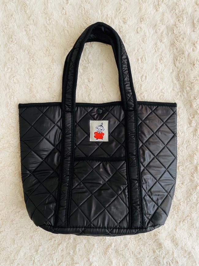 どんなファッションとも相性の良いブラックのキルティング生地に、リトルミイの織りタグが縫い合わされたデザインがシンプルで可愛い。サイズは、高さ24.5×幅(34[上部]、22[底部])×マチ11cmで、ちょっとしたお出かけに最適な大きさだ。軽量で疲れにくいから、荷物の多い日にも頼りになりそう。