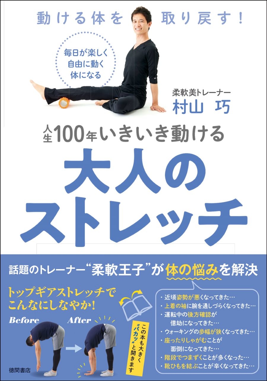 2021年12月11日『動ける体を取り戻す! 人生100年いきいき動ける大人のストレッチ』(徳間書店)が発売された。本書の著者は、ストレッチ関連図書累計21万部を突破し、数々のメディア出演もしている柔軟美(R)トレーナーの村山 巧さんだ。
