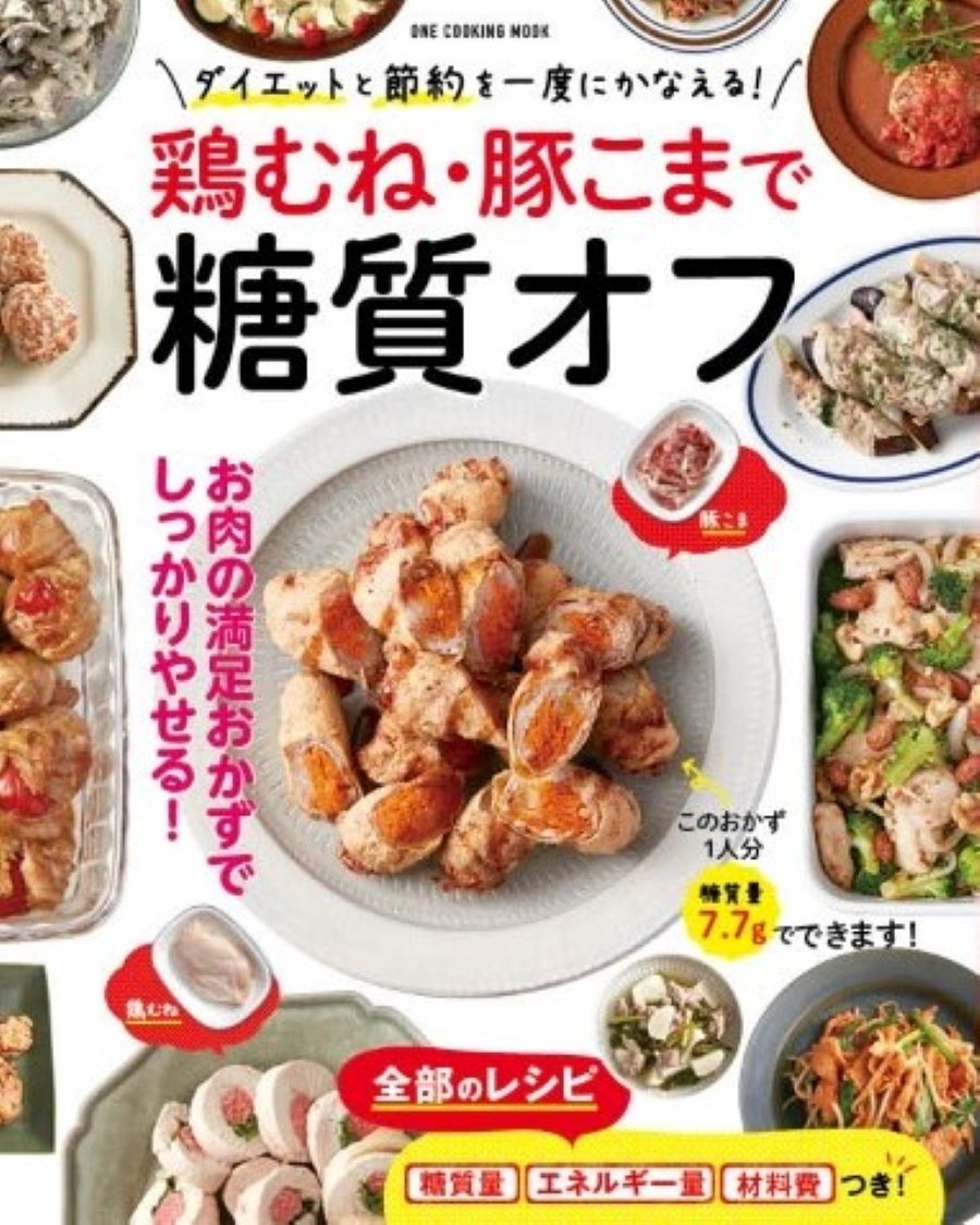 本書、『鶏むね・豚こまで糖質オフ』(ワン・パブリッシング)は、安定した低価格帯の鶏むね肉と豚こま肉をメインにした糖質オフレシピ集。どちらも高たんぱく食材なので、健康的にやせられる。お財布にも優しく、ダイエットと節約が一度にかなう。