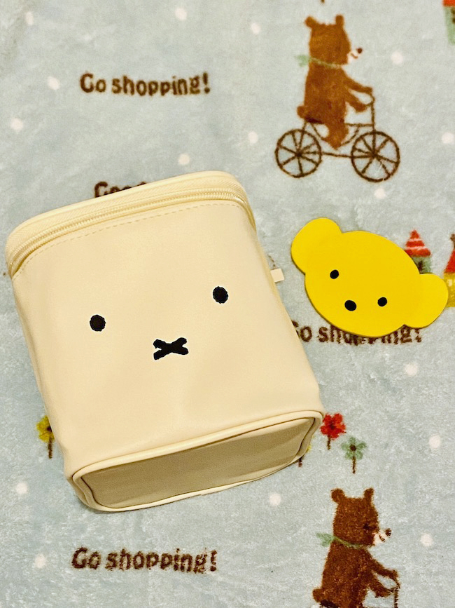 今回は、高さ14×幅13×奥行13cmのミッフィーポーチと、縦7×横11cmのくまちゃんミラーの2点セット。セットで使うのも、単体で使のも可愛くておすすめだ。