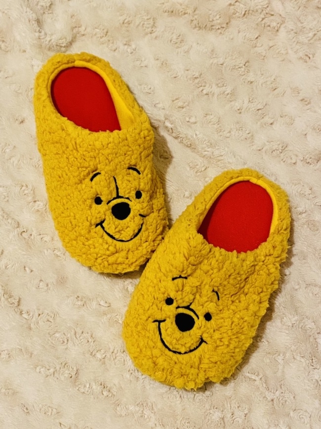 ホワホワのボア素材に、キュートなプーさんの顔が刺繍されていて、心までほっこりする可愛さがある。やわらかクッションが足裏にフィットして、履き心地も満点!プーさんに足元から癒してもらえそうだ。