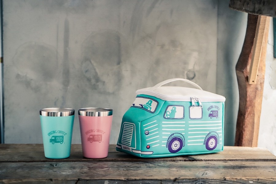 ファンにはおなじみのAMAZING COFFEEの移動販売車「シトくん」をモチーフにしたポーチと、ホット&コールド兼用の真空断熱タンブラーだ。