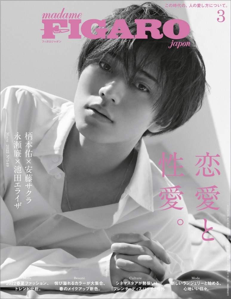 今号ではさらに、映画『真夜中乙女戦争』で共演したKing & Princeの永瀬廉さんと池田エライザさんが、映画を通してふたりが感じた「愛」について考えるコーナーや、金原ひとみさんが愛を描いた掌編小説「嘘偽りのないジビエ」などのスペシャルコンテンツに加え、アンケートデータや、映画やマンガなどのカルチャー、「アムールの国」フランスの恋愛・結婚事情など、あらゆる視点から愛と性を紐解いている。