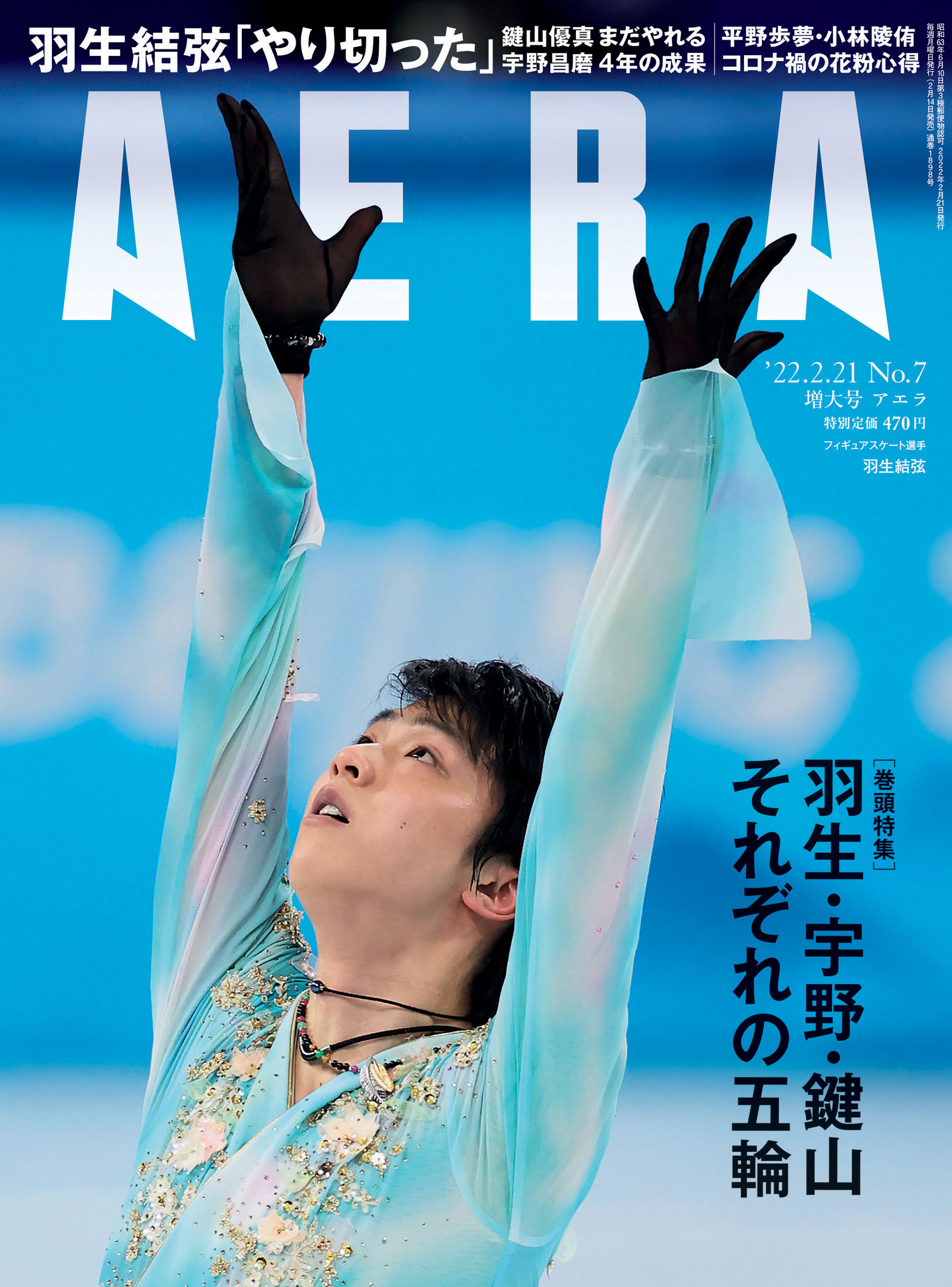 2月14日発売の「AERA(アエラ) 2月21日増大号」(朝日新聞出版)は、北京五輪フィギュアスケート男子シングルを緊急特集。代表選手の羽生結弦さん、宇野昌磨さん、鍵山優真さんそれぞれの戦いを詳報する。King Gnu井口理さんの対談連載「なんでもソーダ割り」は、俳優の菅田将暉さんが登場。気の置けない2人がアラサー男子トークを繰り広げる。