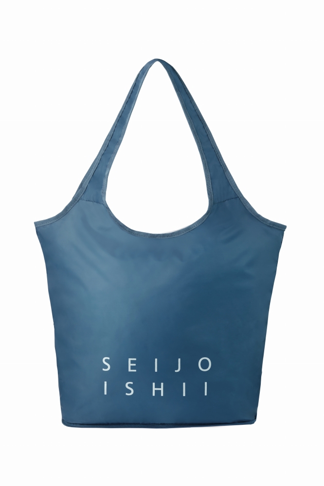 上品なブルーグレーカラーがおしゃれな本アイテムは、デザイン性と使いやすさにこだわるために、成城石井のトップバイヤーと試行錯誤を重ねたとっておきのアイテム。寒い冬にダウンを着ていても、肩掛けできる取っ手サイズになっている。高さ35×幅48×底マチ15cmなので、たっぷり収納できる。