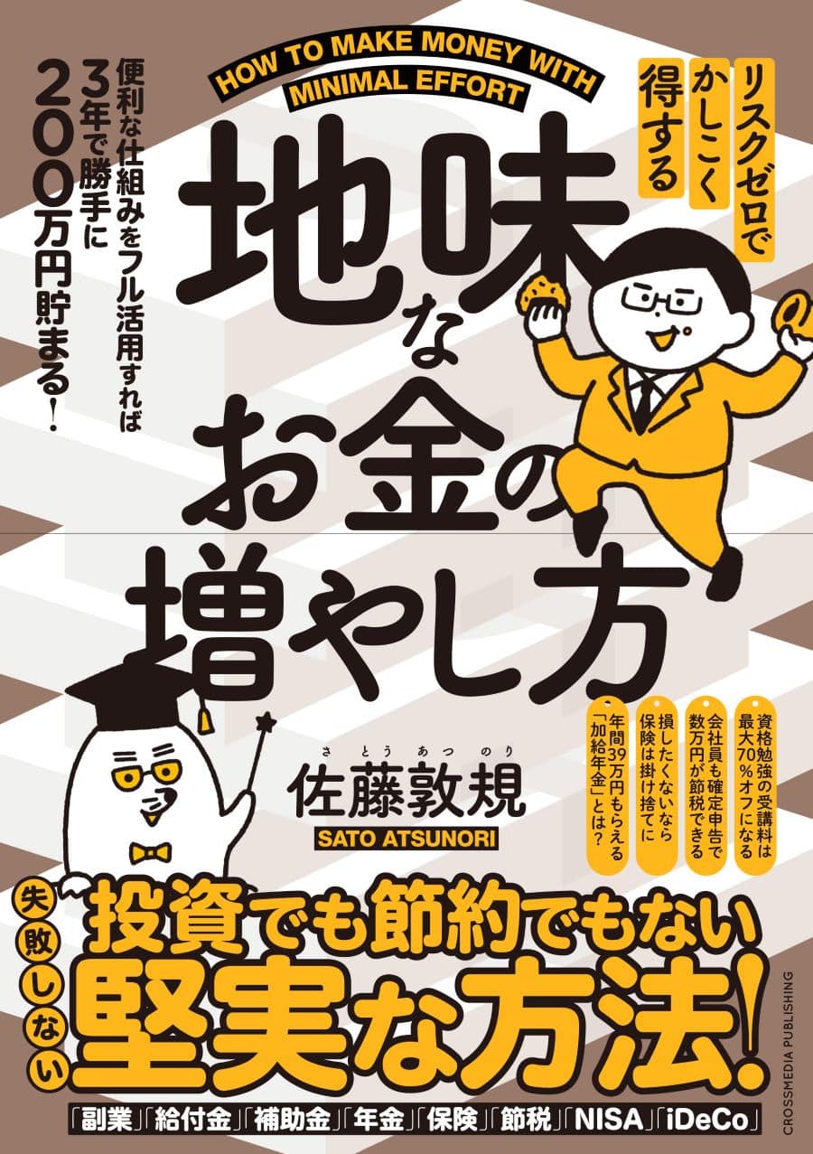本書、『リスクゼロでかしこく得する 地味なお金の増やし方』(クロスメディア・パブリッシング)は、給付金や助成金を活用したり、保険料や税金を抑えたりして、地味ではあるが確実にお金を増やすノウハウを紹介していく。