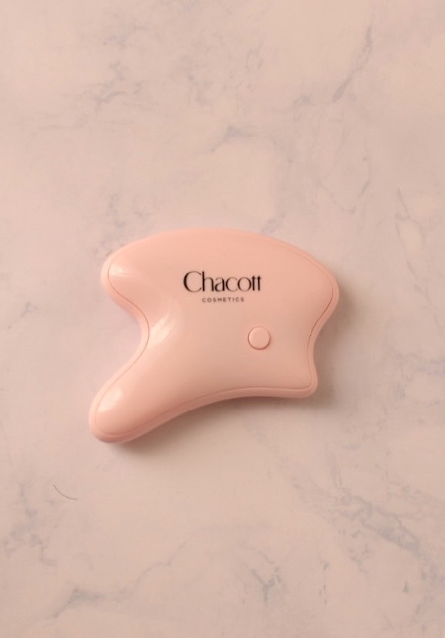 手に持っているだけで気分も上がるキュートな電動美顔カッサは、バレエをはじめステージメイクで人気のチャコット・コスメティクスとコラボしたもの。長引くマスク生活で増えた肌悩みにアプローチするだけなく、ボディ、頭までこれ1つでケアできる優れものだ。