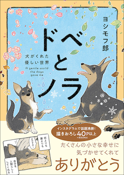著者のヨシモフ郎さんが描いたのは、ヒキコモリだった自分の世界を犬たちが広げてくれた物語。ちょっとやんちゃなところもあるけれど、可愛くてとっても可愛いドーベルマンのドベと、ドベが亡くなった後不思議な縁で飼うことになった元野良犬のノラ。2匹がいなければ、早起きして知らない場所を散歩することも、犬を通じて友だちができることもなかった。「この世界は、犬がくれた世界だ」といえるほどに、犬の存在のかけがえのなさを描いたほっこり愛情で溢れたコミックエッセイである。