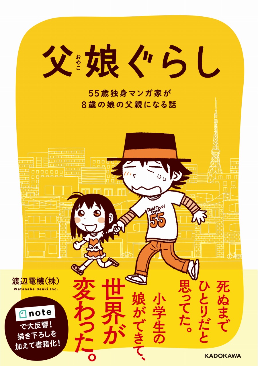 『父娘ぐらし 55歳独身マンガ家が8歳の娘の父親になる話』は、漫画家の渡辺電機(株)さんがメディアプラットフォーム「note」で連載していたコミックエッセイで、「noteクリエイター支援プログラム」を通じて出版が実現したという。