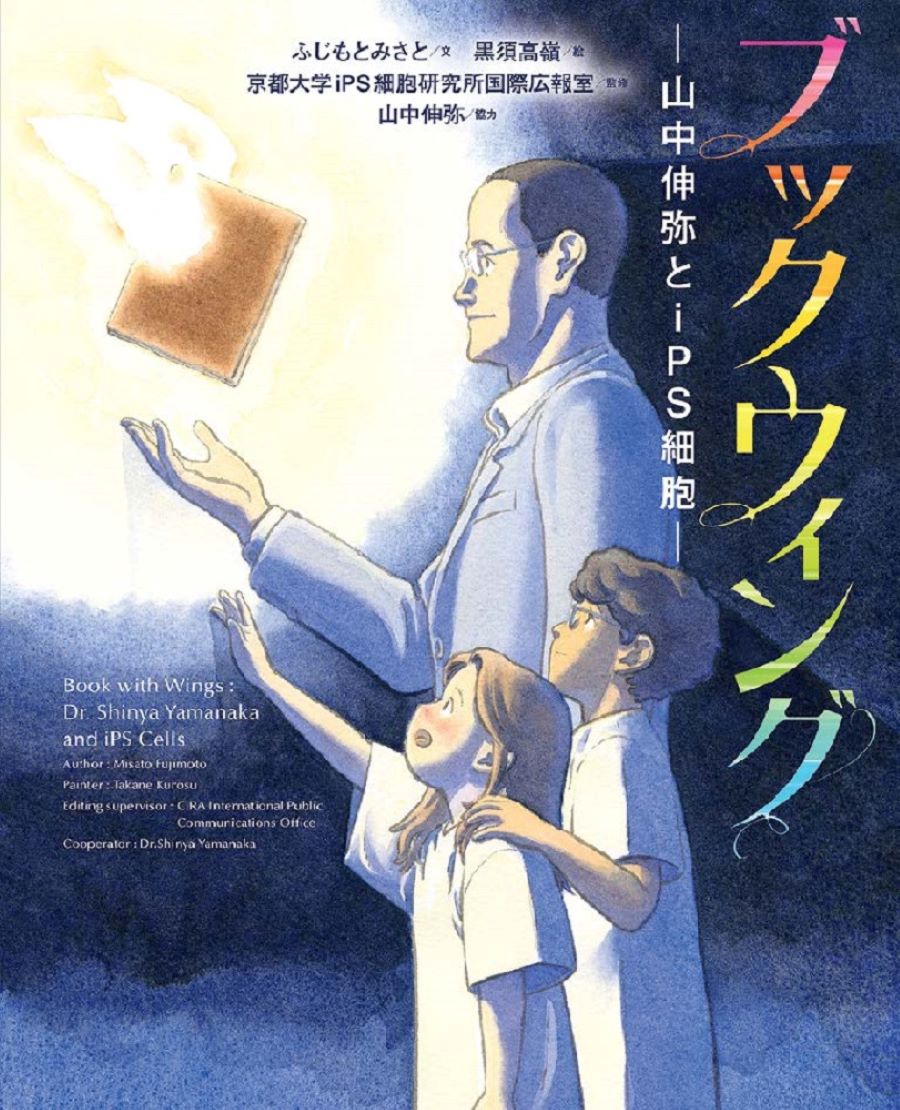 『ブックウィング 山中伸弥とiPS細胞』(新興出版社啓林館)は、小学校中学年以上に向けて、山中教授のこれまでの活躍を、教授と女の子との対話形式で描いている。