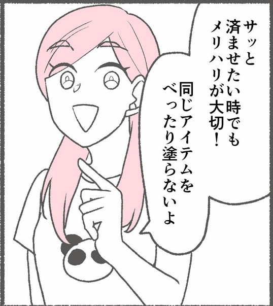 BAパンダさんは、崩れないベースメイクについて、そもそも「重ねるもの」を少なくすることが大事だという。特に毛穴については「『いかに崩れないか』ではなく『もし崩れても、汚くならない』を意識」している。