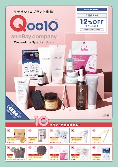 メガ割でおなじみのECモール「Qoo10(キューテン)」から、初のオフィシャルブック「イチオシ10ブランド集結! Qoo10 Cosmetics Special Book」(宝島社)が6月2日に発売された。