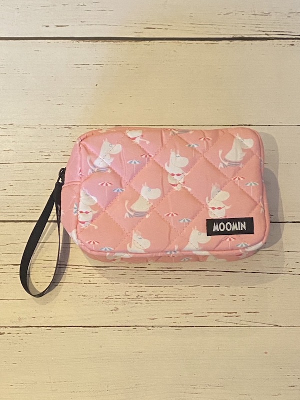 ポーチ全体はピンクを基調としたアイテムだが、ムーミンのタグと「Feelin' Tropical」の文字がプリントされたブラックのストラップが素敵なアクセントになっている。