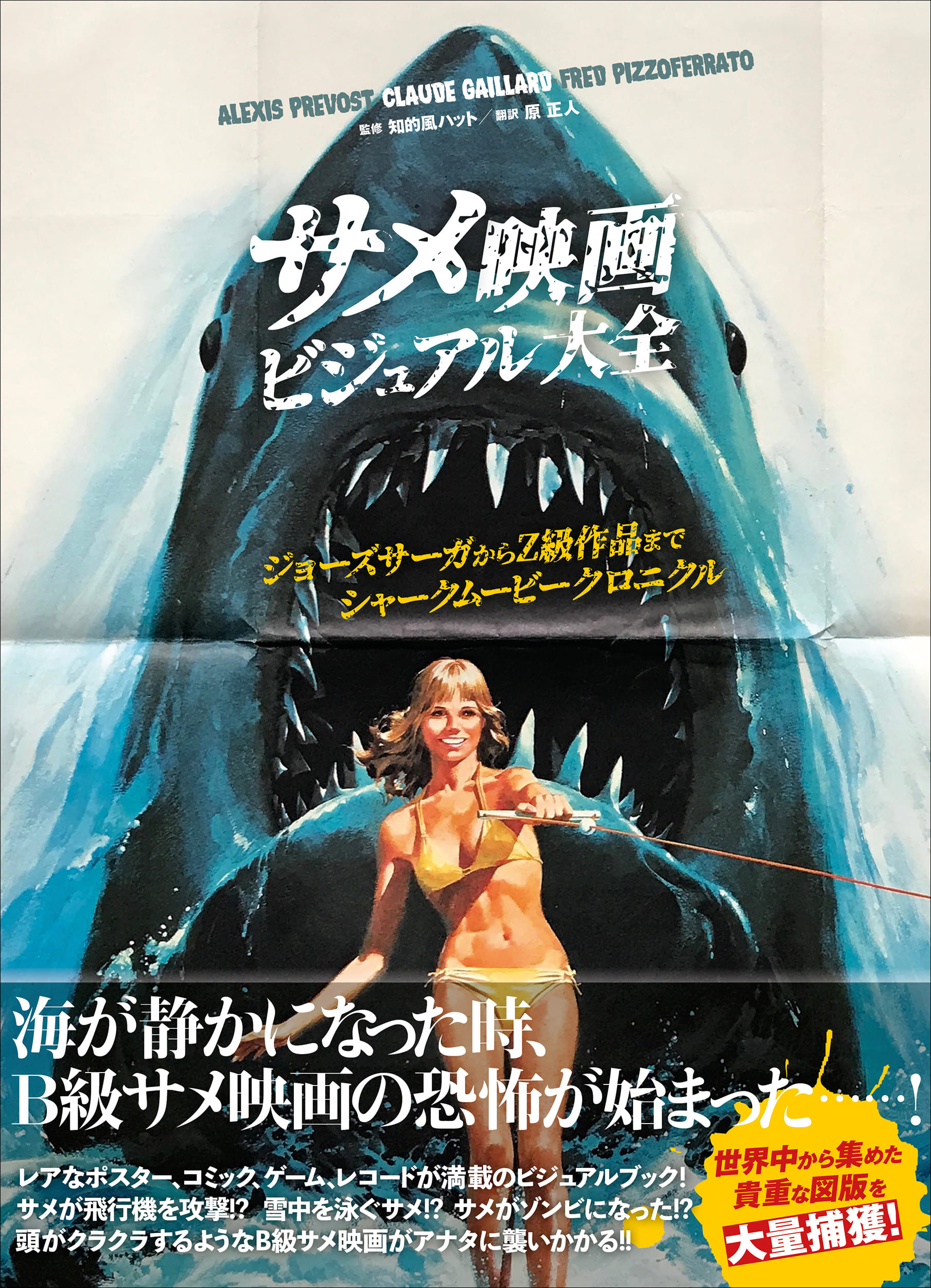 『サメ映画ビジュアル大全 ジョーズサーガからZ級作品までシャークムービークロニクル』(グラフィック社)は、そんな〈B級サメ映画〉ファン、あるいは現時点では『ジョーズ』しか知らないけれど、近い未来うっかり足を滑らせてサメ映画の胃の中へと落ちていくかもしれないあなたのための、〈B級サメ映画〉ビジュアルブックだ。