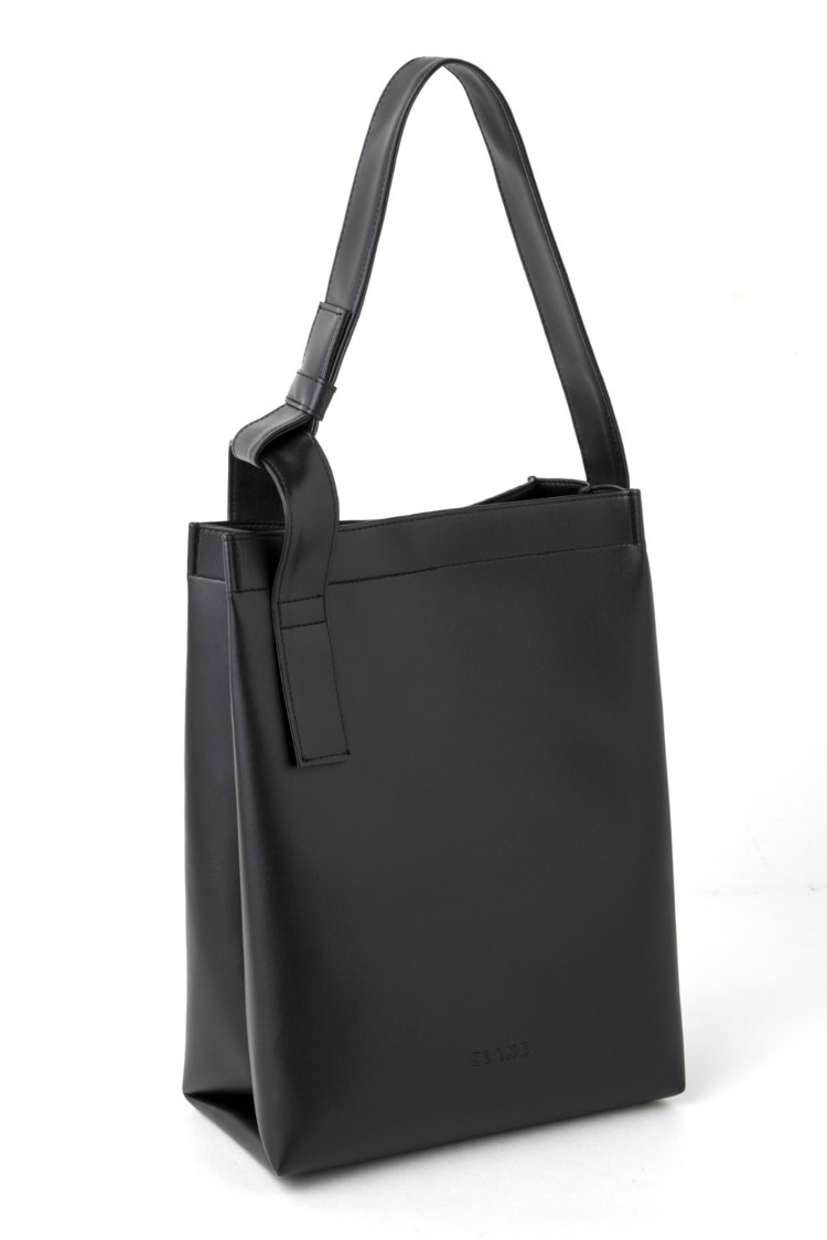 トートバッグは、A4も入る使いやすいサイズ。どんなファッションにも合わせやすいシックなデザインながら、アシンメトリーのショルダーストラップに個性が光る。