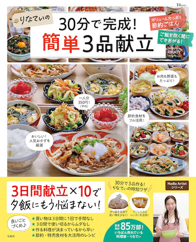 実用的で美味しい献立が多くの女性に支持されている、りなてぃさんの最新刊「りなてぃの30分で完成! 簡単3品献立」(宝島社)が7月26日に発売される。本書では、ご飯が炊き上がる前に、鶏むね、もやし、卵、豆腐といった節約食材を上手に使って、簡単で美味しい献立3品を完成させる。