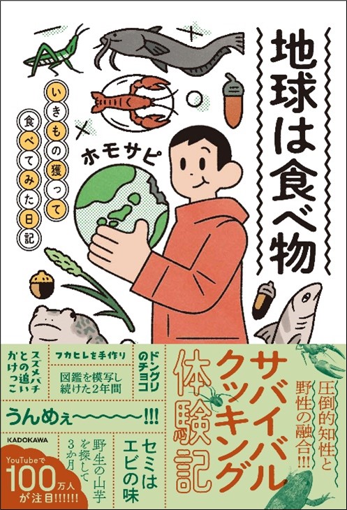 ホモサピさんによる、生き物を捕まえるコツや自然の楽しさ、動画の裏側などを詰め込んだ一冊『地球は食べ物 いきもの獲って食べてみた日記』(KADOKAWA)が7月27日に発売された。