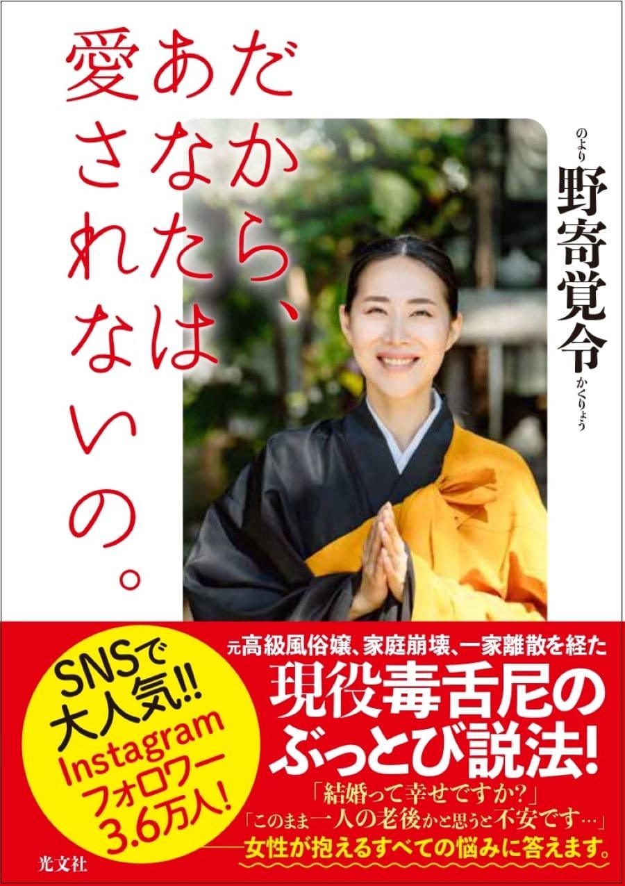 家庭崩壊、一家離散、高級ソープ嬢、離婚、再婚、出家を経て、現在は二児の母。波乱万丈の人生を乗り越えてきた野寄覚令(のよりかくりょう)さんは、現役の尼僧だ。そんな野寄さんが、女性を中心に受けてきた相談は1万件超。どんな相談にも同情・同調せずに、淡々と、時には手厳しく回答している。