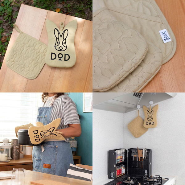 スキレットやメスティンといったアウトドアアイテムを使用するときに必須のミトン&鍋敷き。DODのうさぎで可愛く彩って、ソトでもイエでも料理を目一杯エンジョイしよう。