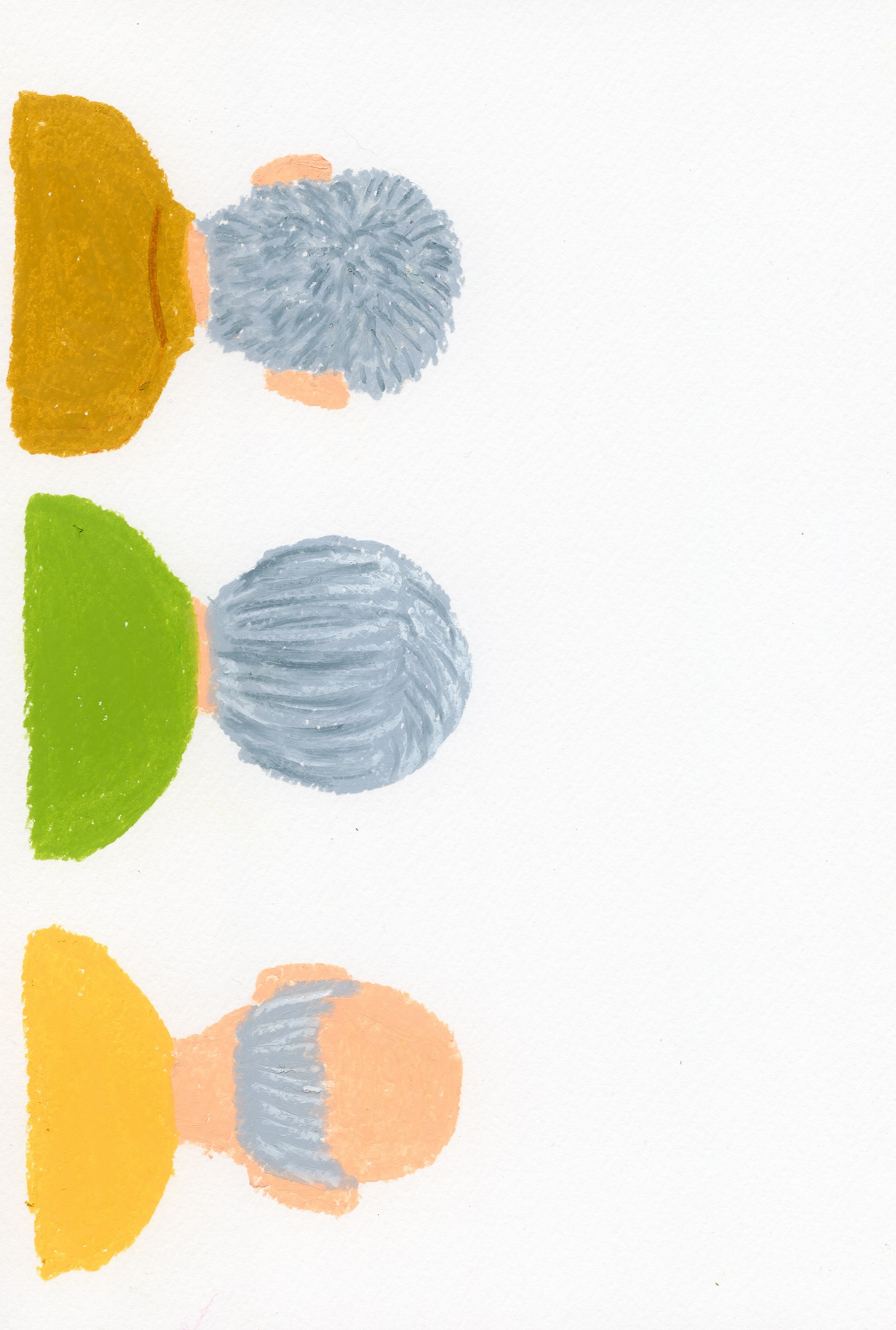 コロナの前に還暦のクラス会があったのですが、そのときに何十年ぶりに会う人もいて、男女ともに風貌がかなり変わっていました。髪が薄くなっている方、白髪の方、皺が増えている方など、それぞれ違いがあって、それがまず頭に残っていました。それから、法事に親戚が集まったときもそうですね。血がつながっていても、髪の毛がふさふさの方と薄い方がいて......その2つから、髪の毛は「年を取ってきた」という実感がわかるものだなと、イメージを膨らませて作りました。