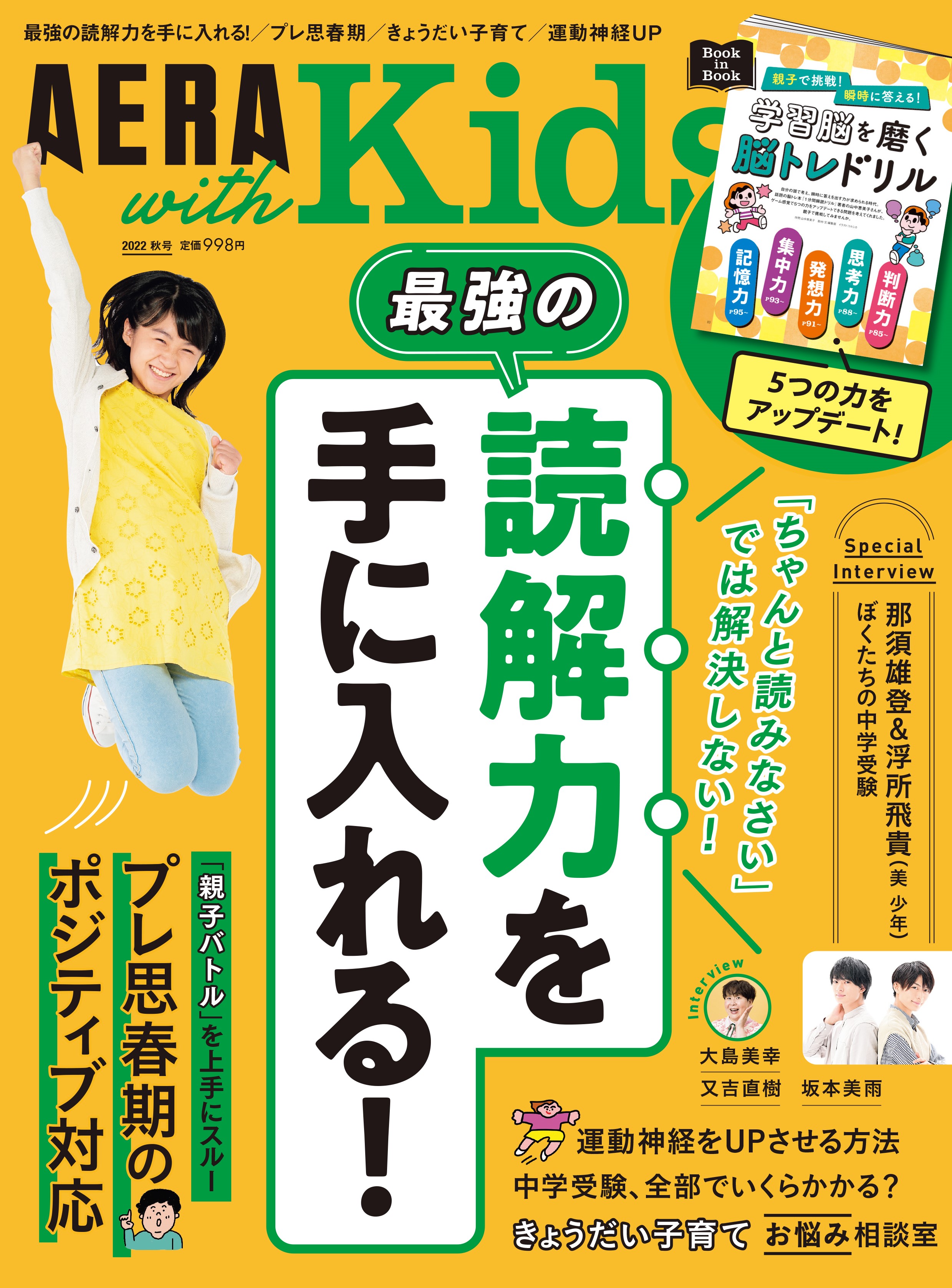 2022年9月5日発売の『AERA with Kids(アエラ ウィズ キッズ)2022年秋号』の大特集は、「最強の読解力を手に入れる」。ママ・パパがズバリ聞きたい、子どもの読解力の上げ方を、専門家に総力取材している。