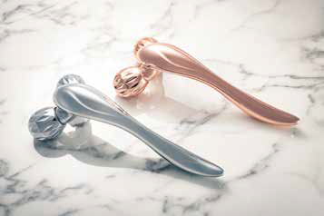 試行錯誤を繰り返して完成した今回の美顔・美容ローラー。肌にしっかり吸いつき、スムーズに転がすことができるのはもちろん、持ち手やローラーの形にもこだわっている。