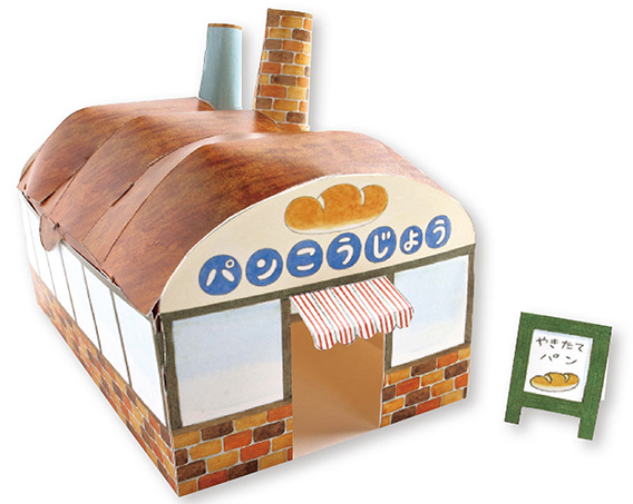 大人気絵本「ノラネコぐんだん」より第1作目の絵本『ノラネコぐんだん パンこうじょう』(白泉社)に登場する山形パンの形の工場がなんと、初のペーパークラフトになった。屋根を開いて、ノラネコたちと一緒にパン屋さんをオープンしよう。