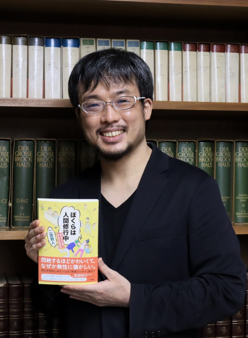 血も凍るホラー小説から華麗なる競技ダンスの潜入ルポまで、ジャンルを問わず独自の視点で数々の作品を世に送り出してきた作家の二宮敦人さん。9歳年下で、当時現役の藝大生だった妻の協力を得てまとめた『最後の秘境 東京藝大―天才たちのカオスな日常―』は累計40万部突破のベストセラーになった。新刊エッセイ『ぼくらは人間修行中 はんぶん人間、はんぶんおさる。』(新潮社)では、その妻との間に生まれた2人の子どもたちとの日常をユーモアあふれる視点で綴っている。子どもたちが「おさる」から「人間」へと進化していく過程で二宮さんが気づいたこととは。作家目線、パパ目線の子育ての面白さを伺った。
