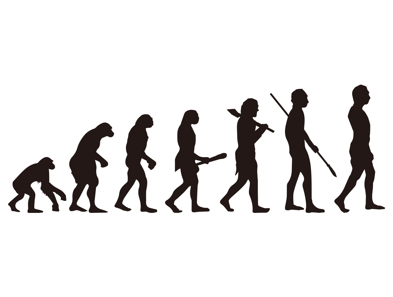 人類の歴史について書かれた書物には、「人類進化の行進図」といったものがよくあるが、それは手を付いて歩く「ナックルウオーク」姿の類人猿から徐々に手を地面から離し、腰をかがめた姿勢から直立二足歩行になっていく、教科書でもおなじみのあの図である。