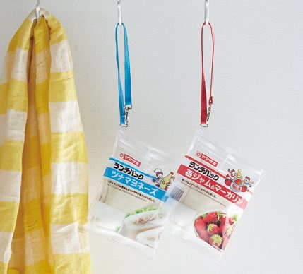 「ツナマヨネーズ」は爽やかなブルーが印象的。対する「苺ジャム&マーガリン」は真っ赤な苺がアクセントに。ビニールポーチには、カラフルなお菓子や文具を入れて使うのがおすすめです。