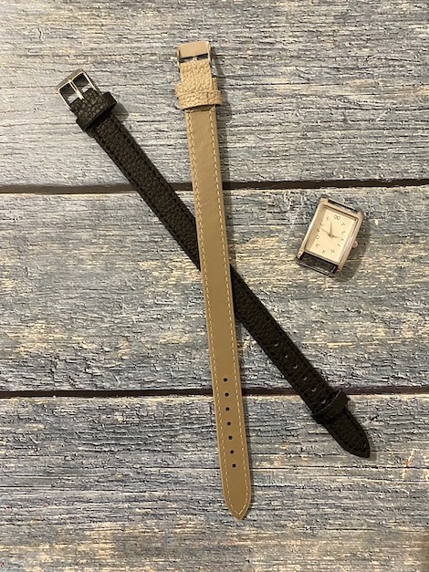 どんなシーンでも使いやすいブラックと、柔らかな雰囲気のグレージュの2種類のベルトがついています。用途やコーディネートに合わせてパッと付け替えできる優秀なアイテム♪