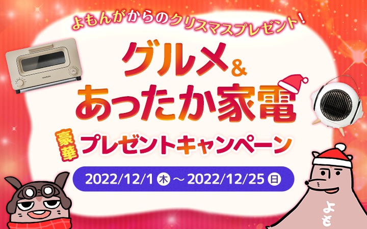 スマホ向けコミックサイト「マンガよもんが」で、ユーザーへのクリスマスギフトとして2022年12月1日から12月25日まで実施されるキャンペーン。