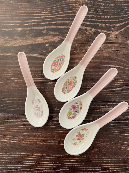 裏面にはブランドロゴが刻印されていて、細部にまでこだわった「お花のれんげ5本セット」。寒くて出かけたくない朝も、お花のれんげでごはんを食べたら、元気をもらえそうです♪