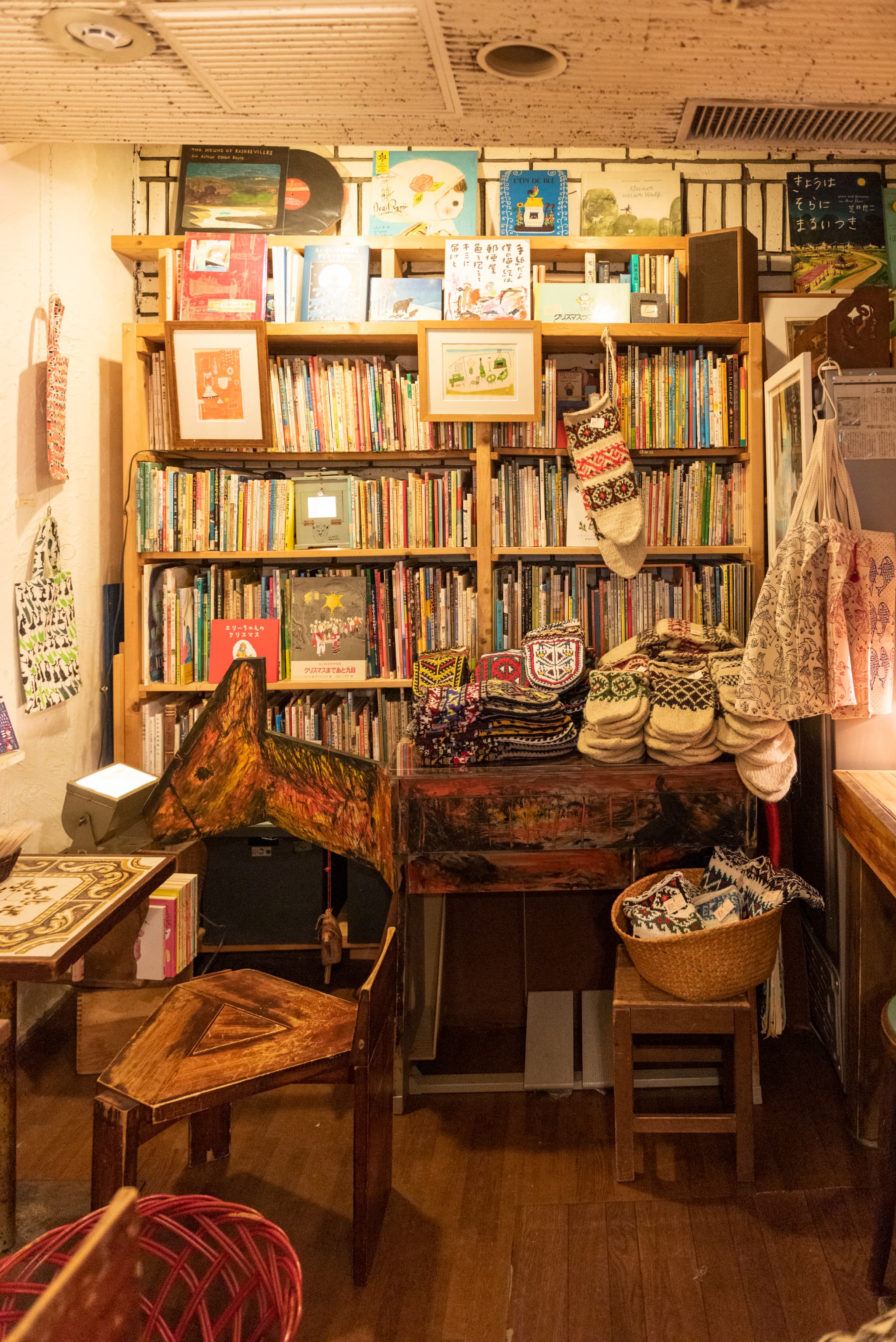 シーモアグラスでは、お客さんと絵本との出会いが広がるような、さまざまな展示が毎月のように行われている。12月5日~28日の期間(火曜・金曜は休み)は、「イランの絵本と靴下展 vol.3 マルジャーンからのギフト」を開催中。毎年12月に開かれ、今年で3回目となる人気企画だ。