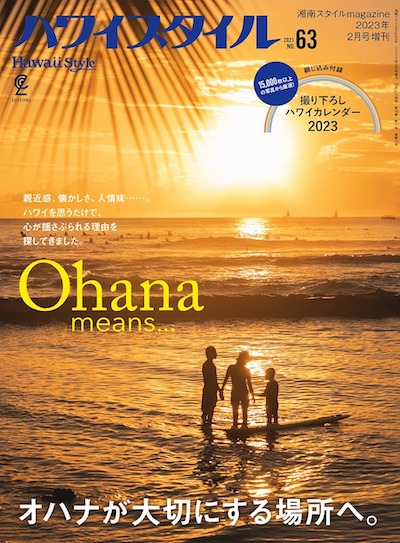 ハワイ専門誌「ハワイスタイルNo.63」(EDITORS)が12月21日に発売された。付録には、約15,000枚の中からとっておきの写真を厳選した2023年版ハワイフォトカレンダーが登場する。