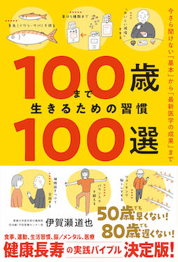 2022年12月7日に発売された『100歳まで生きるための習慣100選』(飛鳥新社)は、食事・運動・生活習慣などあらゆる面から健康長寿の秘訣を網羅している。愛媛大学医学部附属病院の抗加齢・予防医療センター長である伊賀瀬道也さんによる、集大成といえる1冊だ。伊賀瀬さんは『世界一受けたい授業』『NHKスペシャル』などメディアでもおなじみの、抗加齢の名医だ。