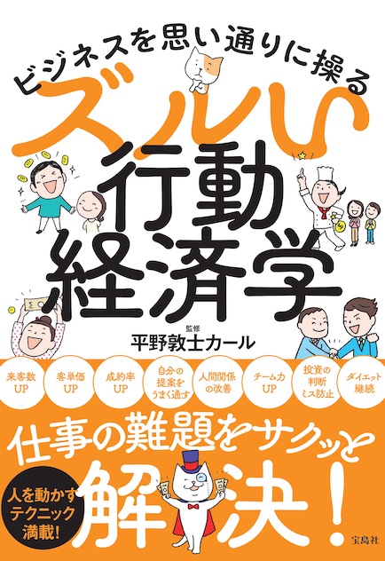 経営コンサルタント、平野敦士カールさんが監修した『ビジネスを思い通りに操る ズルい行動経済学』(宝島社)は、人が無意識におこなっている思考と選択のクセを解明する行動経済学の知見に基づき、ビジネスシーンはもちろん、日常生活でも役立つエッセンスをクイズ形式で面白く解説している。