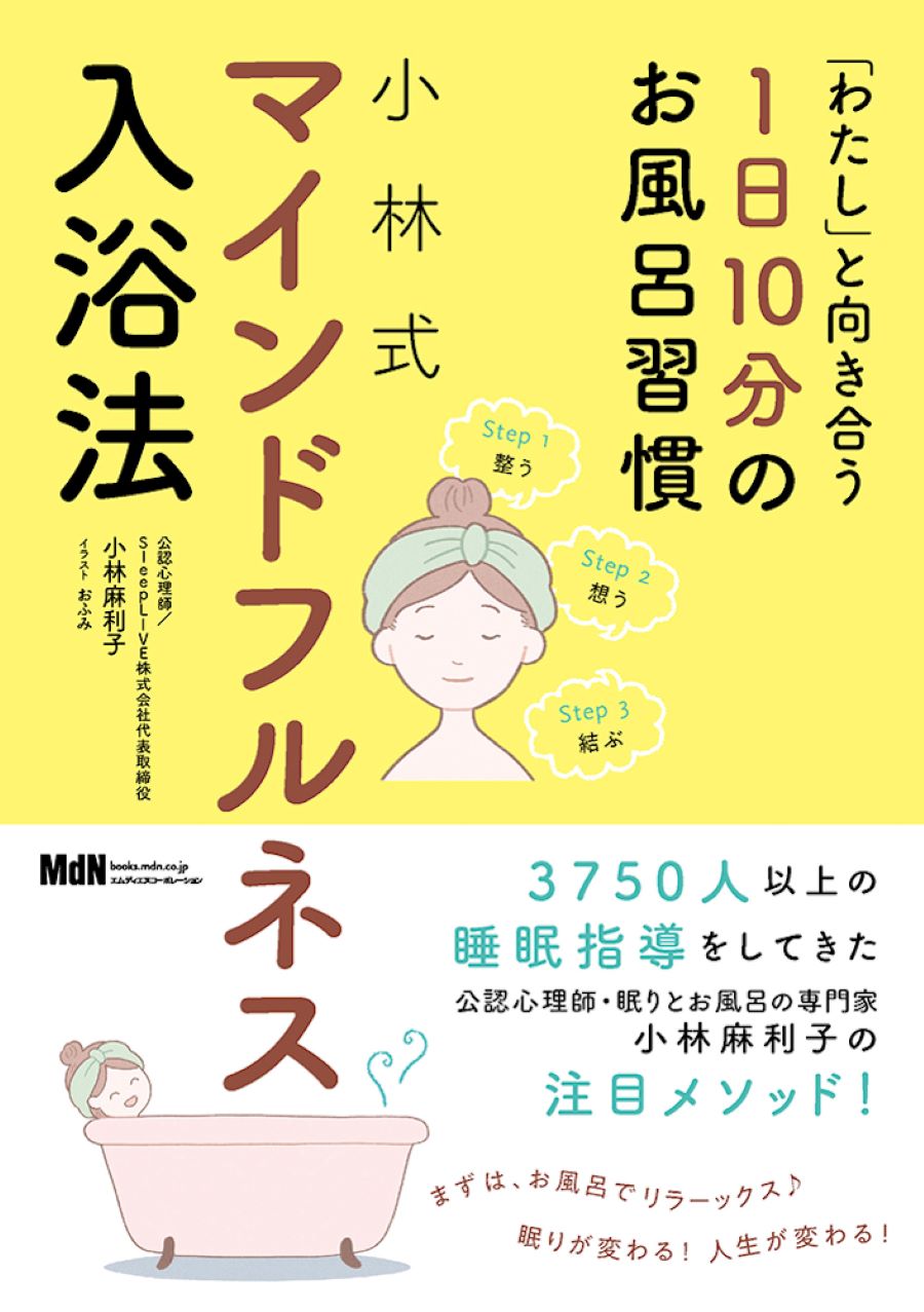 本書は、お風呂をはじめとした生活習慣改善の指導をしてきた小林麻利子さんによる、マインドフルネス入浴法を紹介する1冊だ。小林さんはこれまでに、3750人以上もの熟睡につながるマンツーマン指導をしてきた。