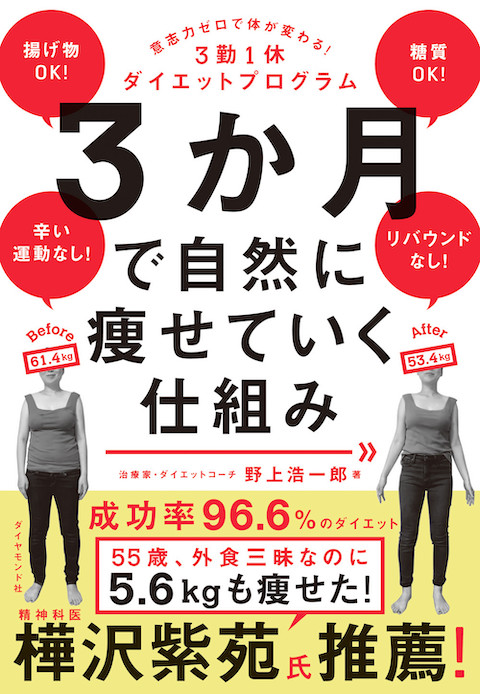 『3か月で自然に痩せていく仕組み』(ダイヤモンド社)は、成功率96.6パーセントのダイエット・メソッド「3勤1休ダイエット」をわかりやすく解説した1冊。「3日坊主をくり返せば、必ず痩せる」をモットーにした、我慢も意志力も不要だという画期的なダイエット法だ。