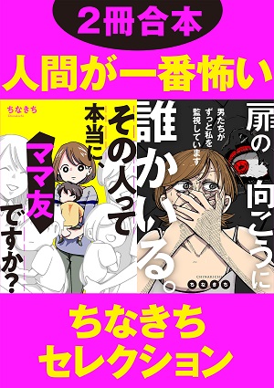 KADOKAWAから発売された『【2冊合本】人間が一番怖い ちなきちセレクション』(著者:ちなきち)は、Instagramで絶大な人気を誇るちなきちさんの代表作『扉の向こうに誰かいる。 男たちがずっと私を監視しています』『その人って本当に、ママ友ですか?』の2冊をまとめた合本版電子コミックだ。