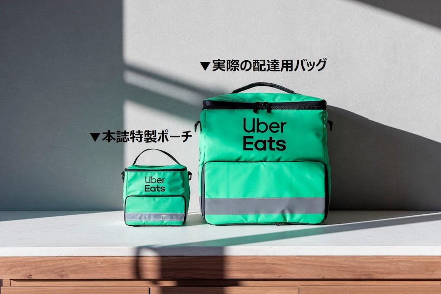 2月7日に発売された「Uber Eats 配達用バッグ型2WAYポーチBOOK」(宝島社)は、Uber Eatsのブランドブック第2弾。付録は本物そっくりのポーチで、カラーはインパクト大なグリーンバージョンです。