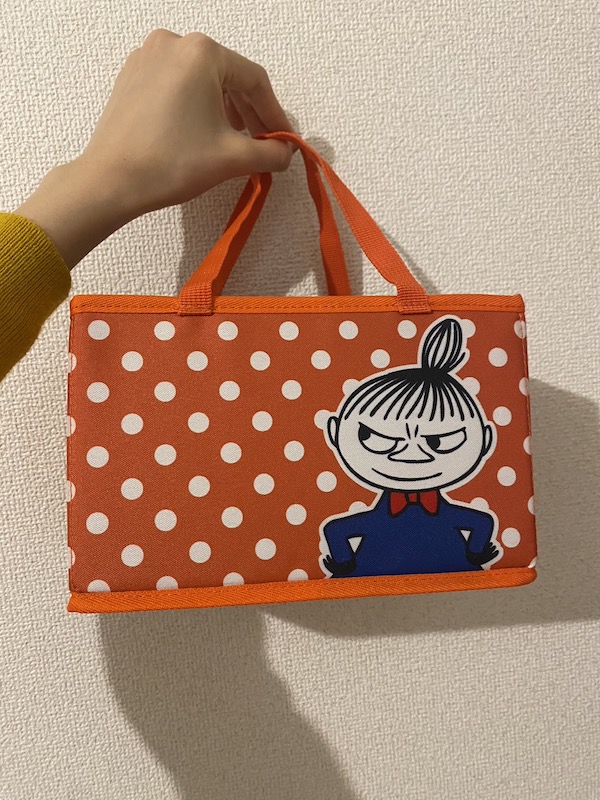 元気がでるオレンジにドット柄。表情の異なるリトルミイを両面にプリントしたキュートな仕上がりです。