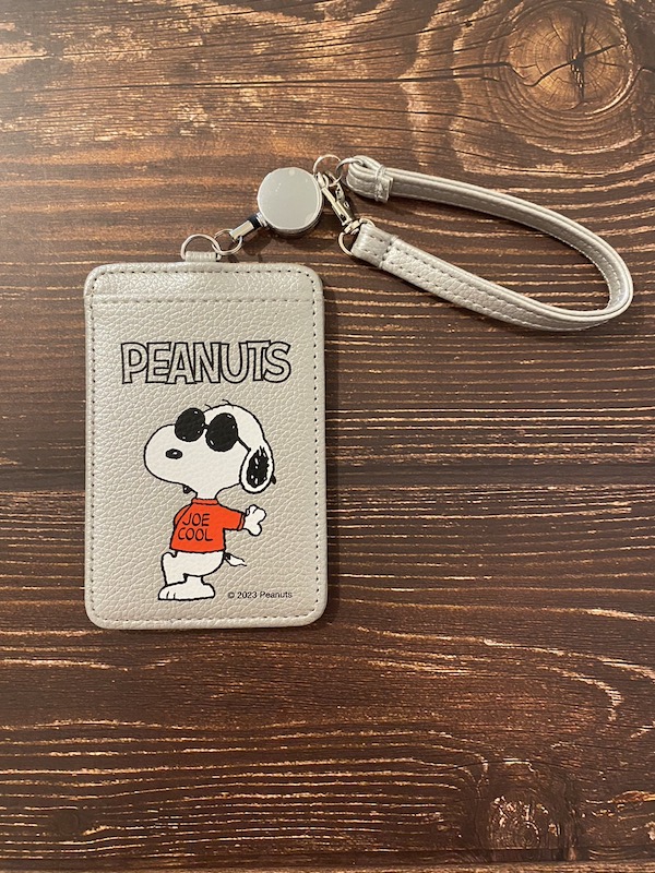 バッグにつけたまま改札機にタッチできるリール付きのカードケース。サングラスをかけたスヌーピーのイラストがとってもキュートです。