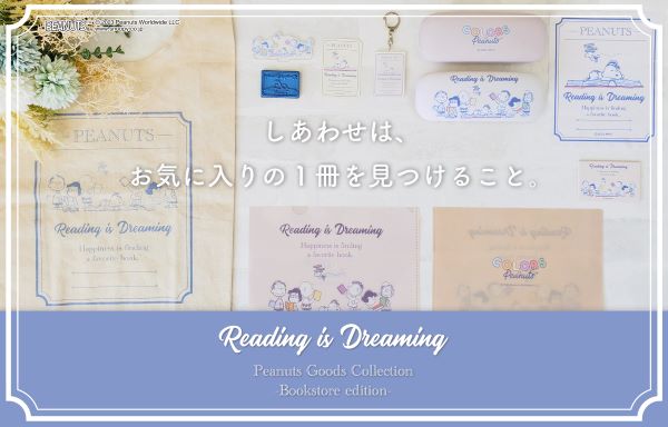 お気に入りの本に読みふけるスヌーピーと仲間たちがデザインされたグッズが、3月23日から書店限定で発売されている。