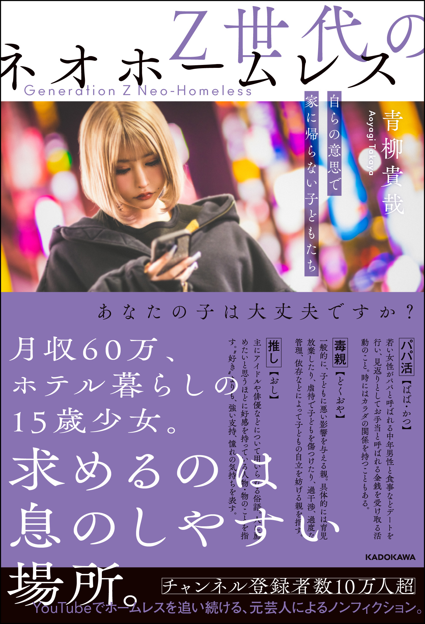 2023年4月3日、YouTube「アットホームチャンネル」を運営する青柳貴哉さんの初の著書『Z世代のネオホームレス 自らの意思で家に帰らない子どもたち』(KADOKAWA)が発売された。