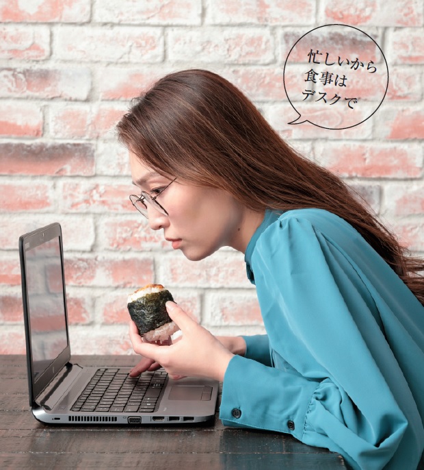 心当たりがある人もいるかもしれない。たとえば、パソコンの液晶画面を見ながらお昼を食べる動作は背中が丸まり、あごと首が前に出る姿勢になりやすい。このような姿勢はあごに負担がかかり、顔がたるむ原因になってしまうのだそう。