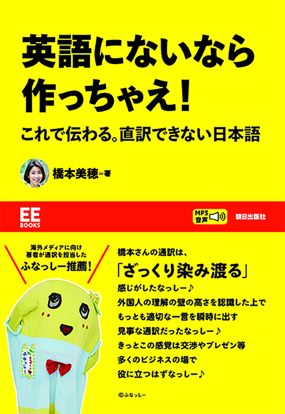 そもそも英語にない・英語で何と言ったらいいのかわからない・直訳では確実に通じない日本語を、通訳はどう訳しているのだろうか。ふなっしー、ピコ太郎さん、野性爆弾くっきー!さんなど、ぶっ飛んだ日本語が飛び出る人物の英訳をこなす橋本美穂さんが、独自のアウトプット術を著書にまとめた。『英語にないなら作っちゃえ! これで伝わる。直訳できない日本語』(朝日出版社)だ。