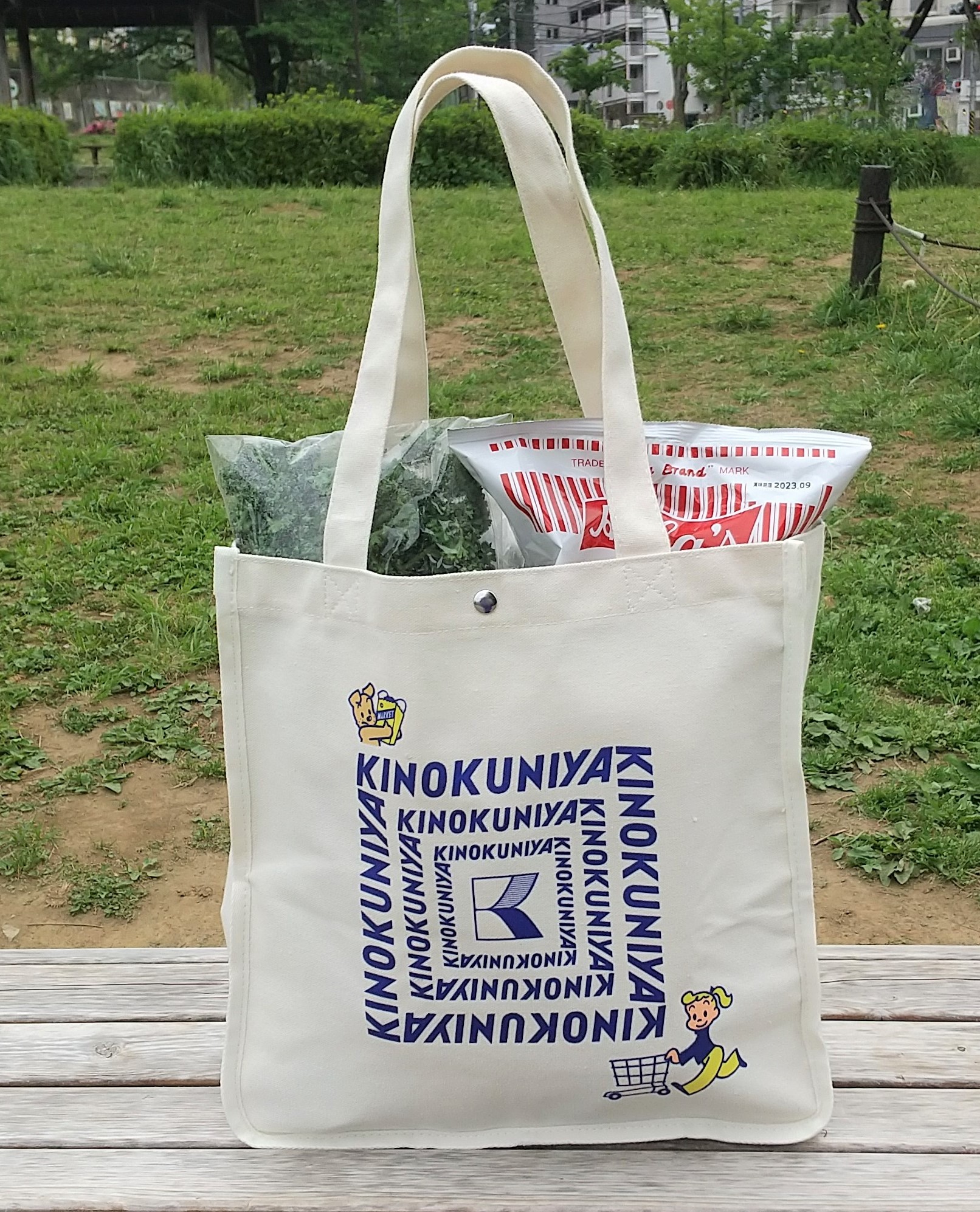 トートを持って、さっそくお買い物へGO! たっぷり入るのでついつい買いすぎてしまいました。