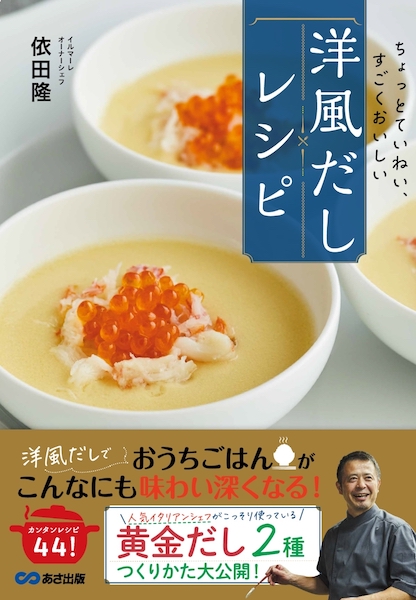 『ちょっとていねい、すごくおいしい 洋風だしレシピ』(あさ出版)は、有名イタリアンレストラン「イルマーレ」の依田隆オーナーシェフがいつも使用している「洋風黄金だし」のレシピを初公開した1冊。